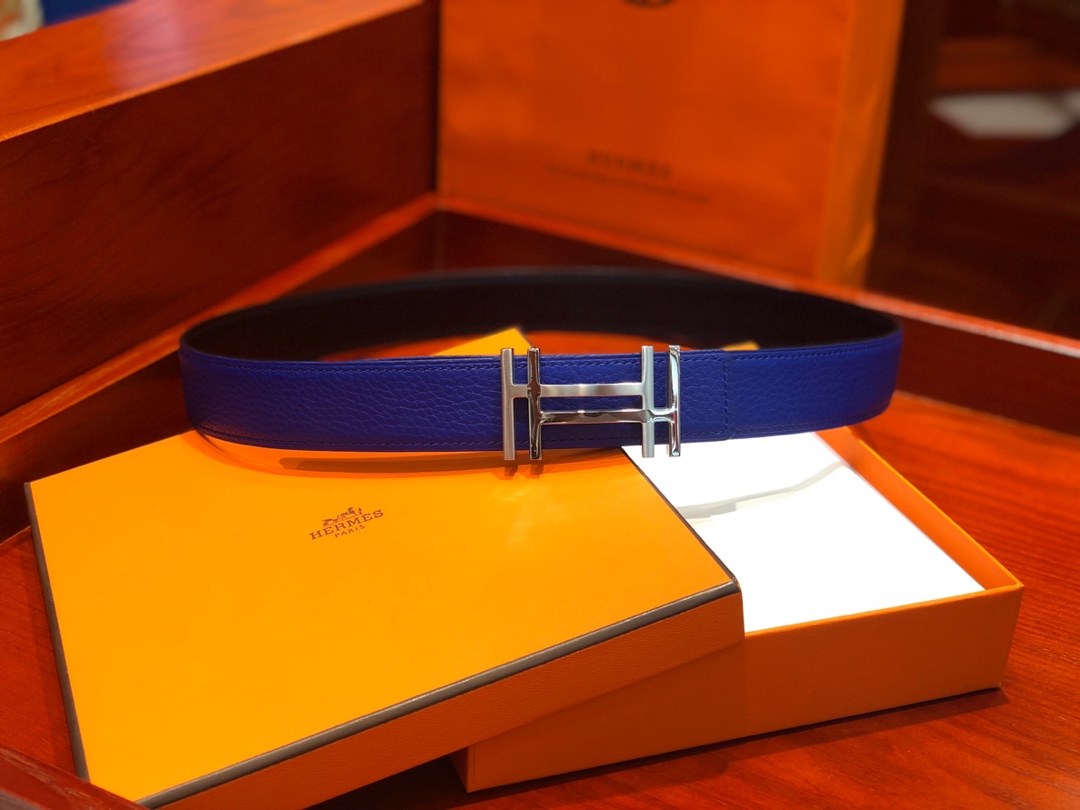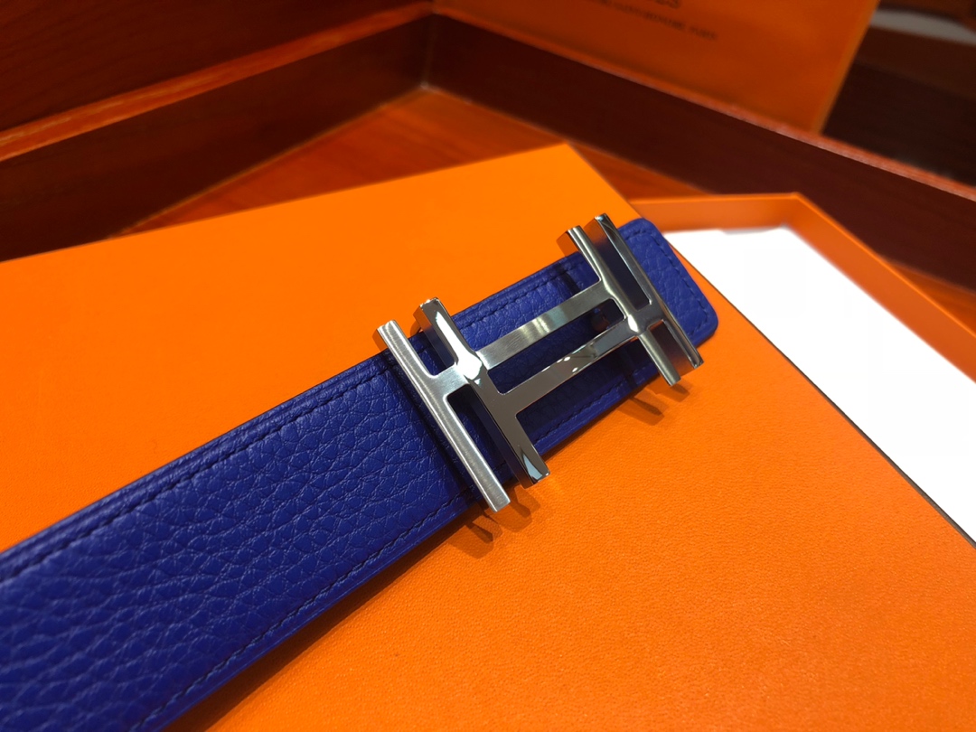 Hermès 3.2cm wide new belt buckle electric blue