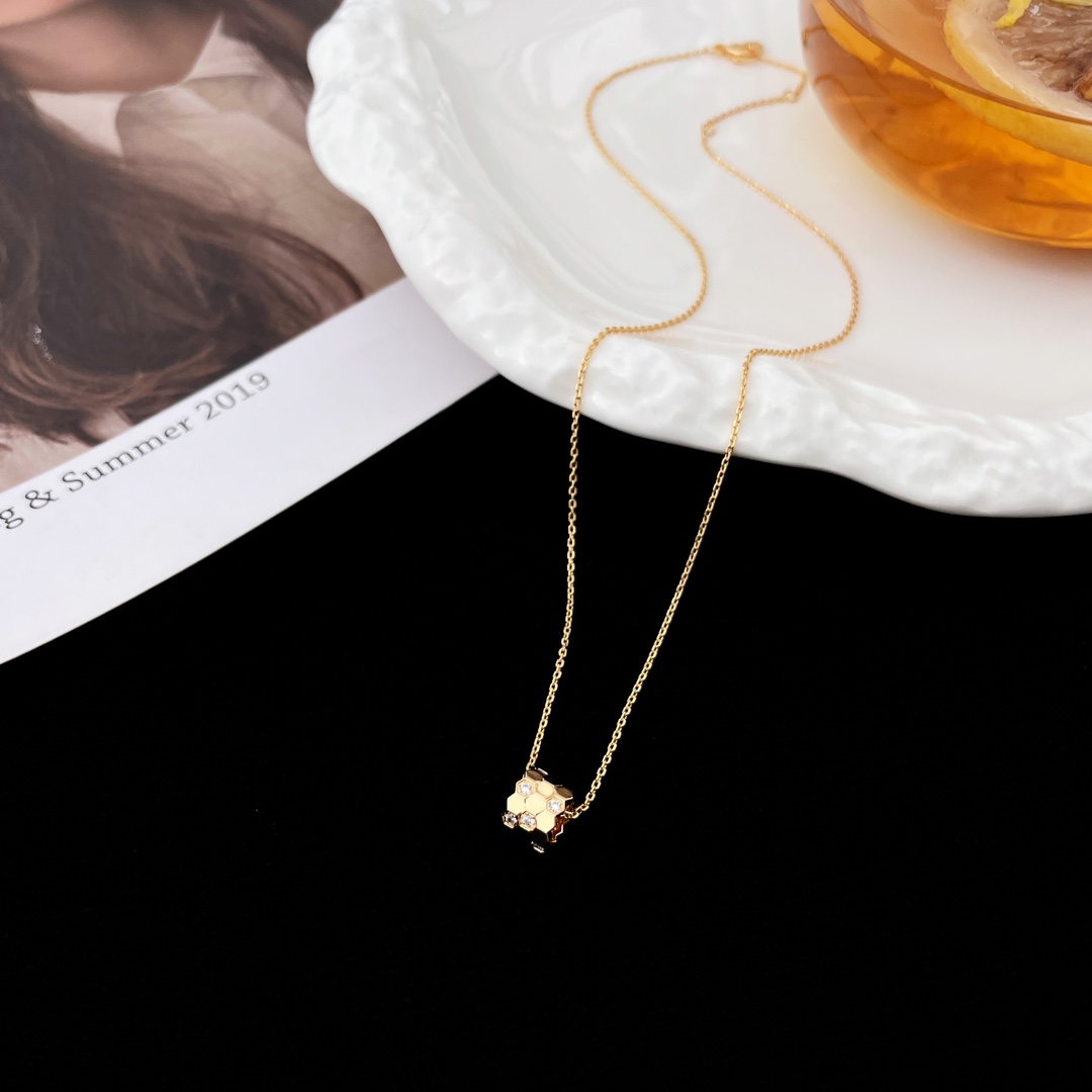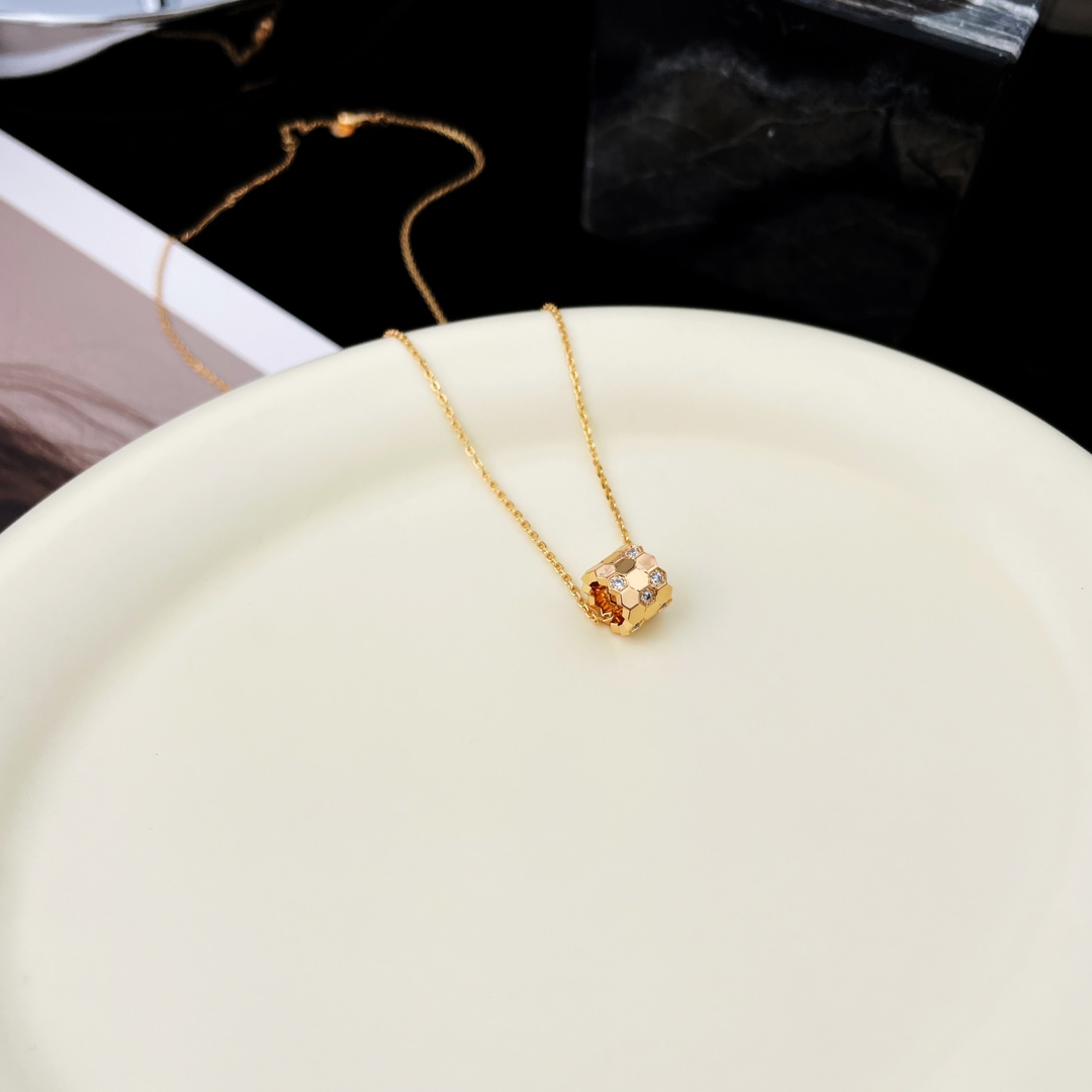 The Bee My Love diamond pendant is designed in a honeycomb shape to create a dazzling pendant. The work is crafted with perfect geometric shapes and features a honeycomb design made of mirror polished rose gold, capturing light and emitting sparkling radiance, highlighting the radiance of the skin.
