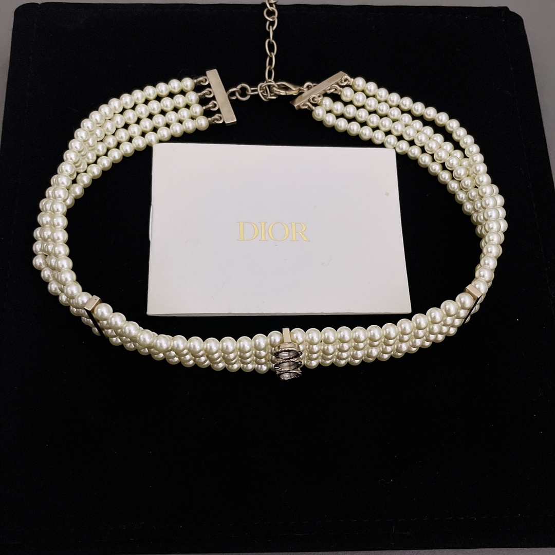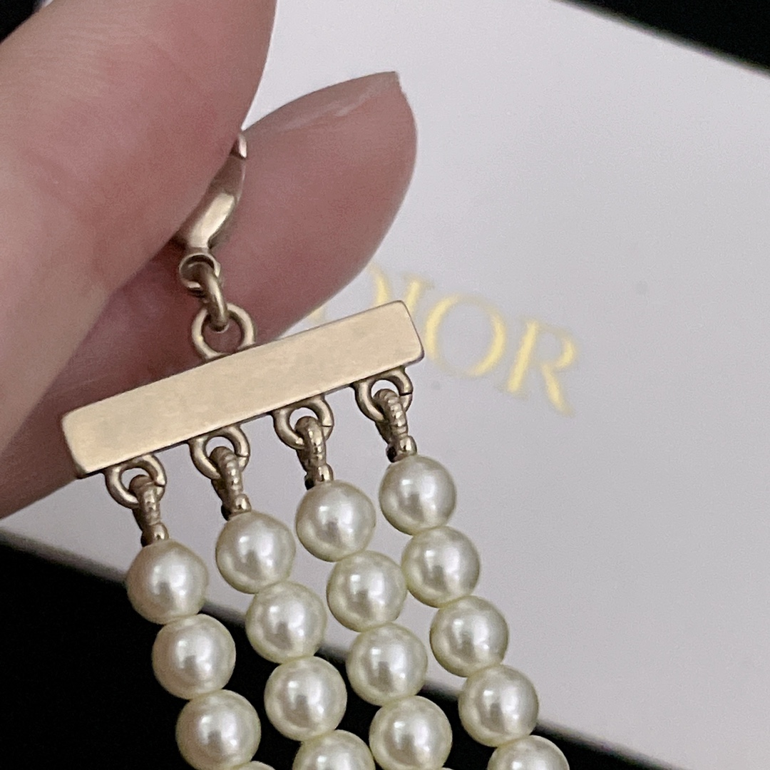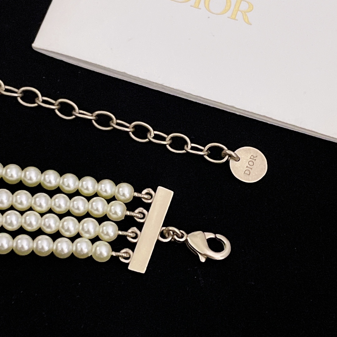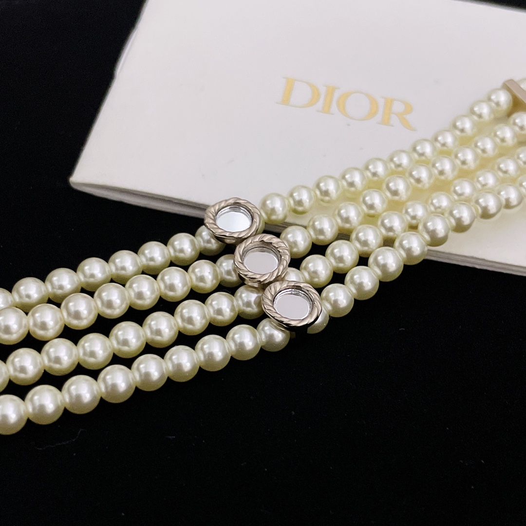 Dior mirror multi-layer pearl model, a super rare style, four-layer pearl design, a wider design, the upper body makes the neck look more slender, the unique mirror small accessories design, full of texture, super classic and versatile, exquisite and eye-catching.