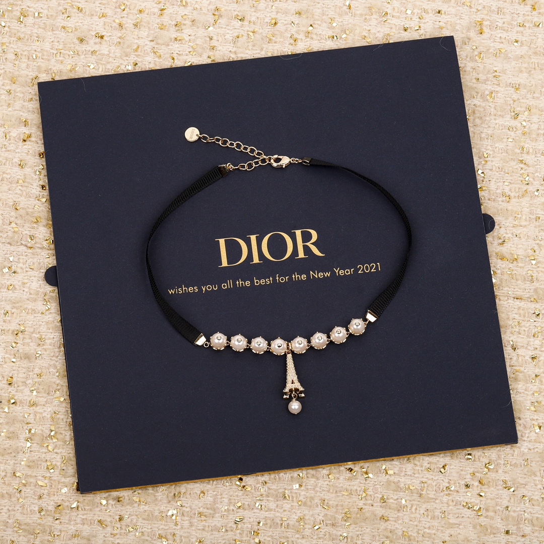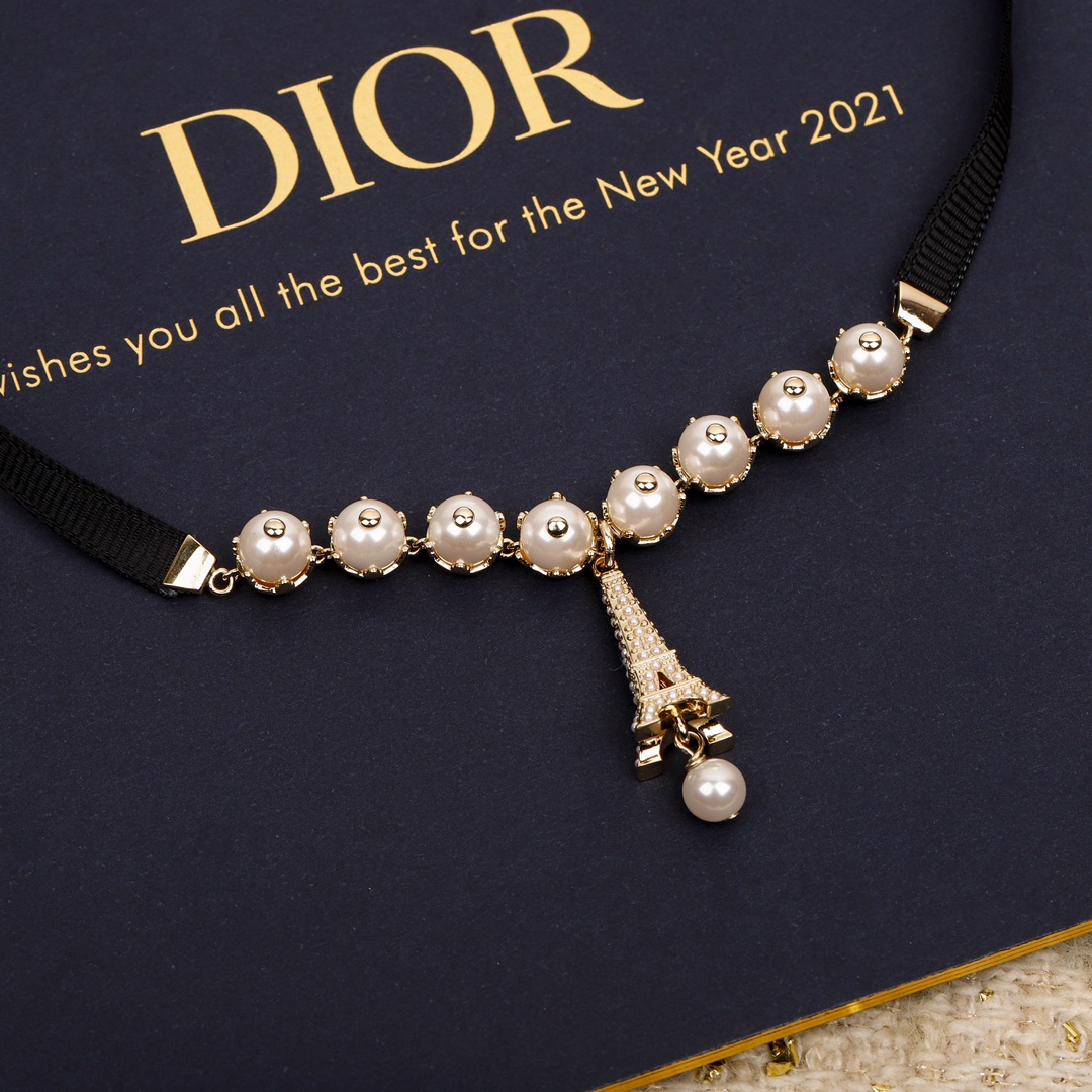 Dior's Eiffel Tower beaded ribbon necklace is stylish and stylish, and the mirrored accessories are very special.