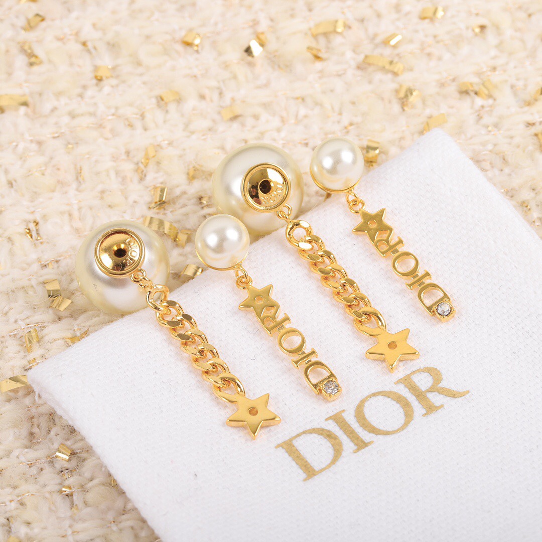 Dior's new earrings, three ways to wear them, the upper ear is absolutely elegant, and the chain is also very special