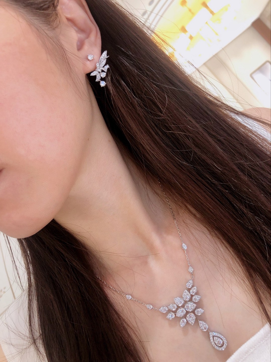 Using laurel as the creative theme, and celebrating this extraordinary plant through the Laurier series. The aristocratic family uses diamonds and platinum to reinterpret and create lifelike exquisite masterpieces that resonate with nature and are captivating. The eternal symbolism of Queen Josephine's love for laurels, while French Emperor Napoleon regarded it as a symbol of victory and power. The modern charm of women is highlighted by the softness of these Laurie earrings.