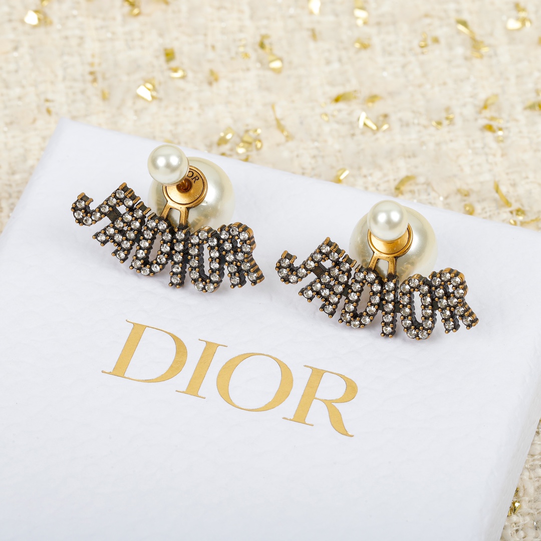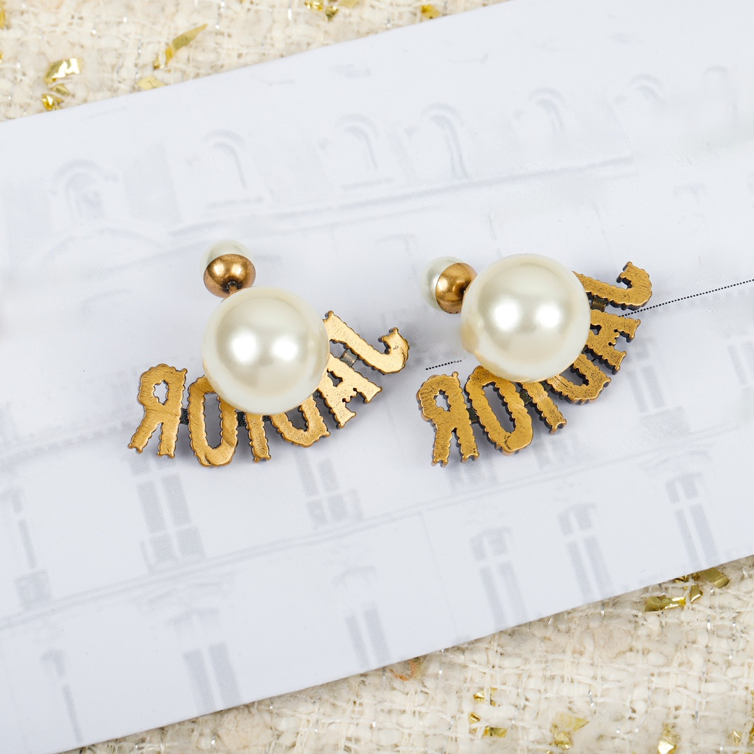 Dior pearl and diamond stud earrings, fashionable and versatile, with exquisite details