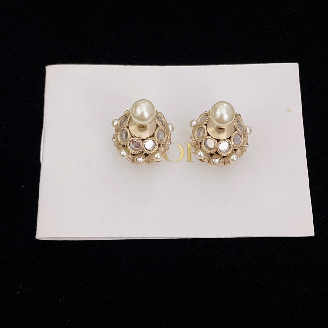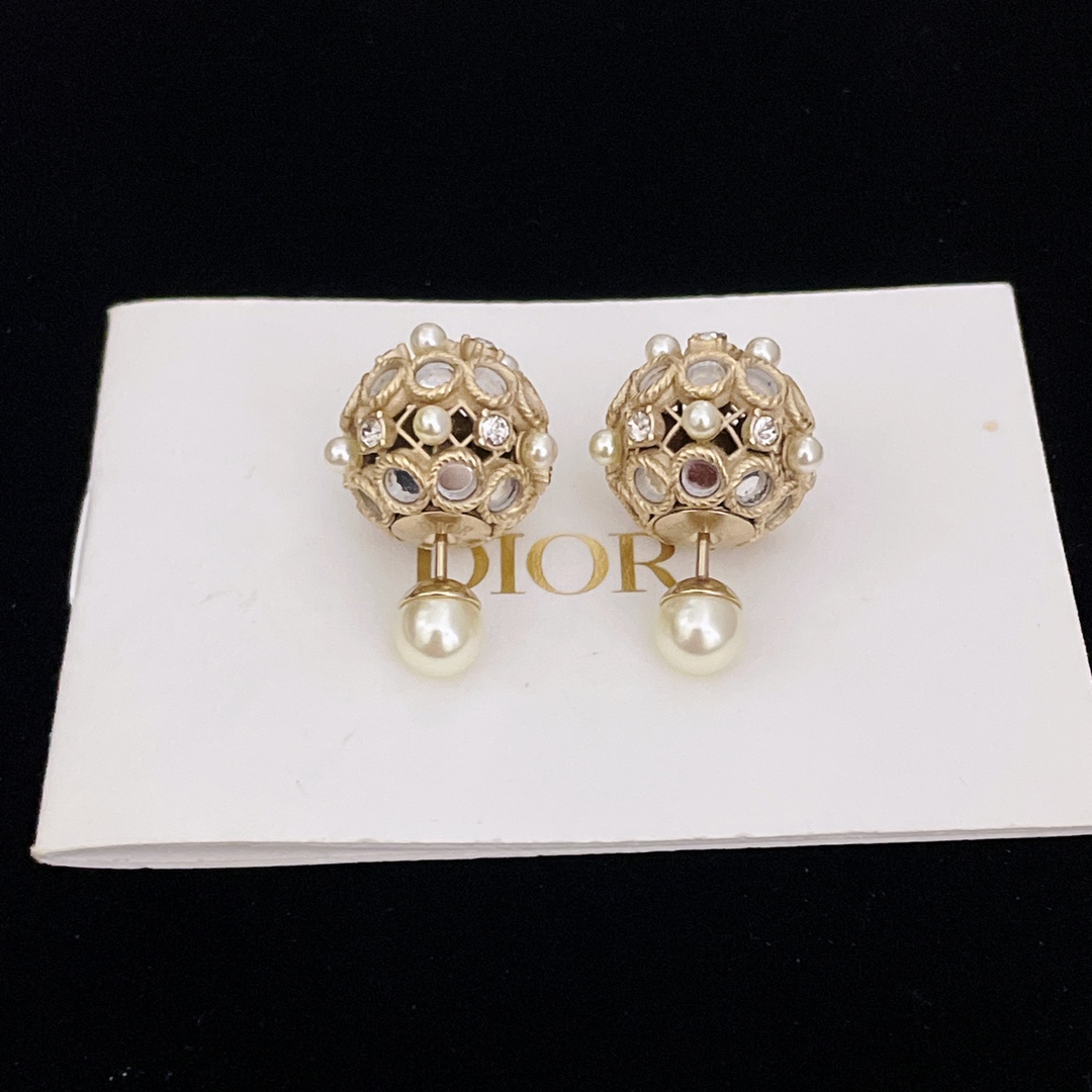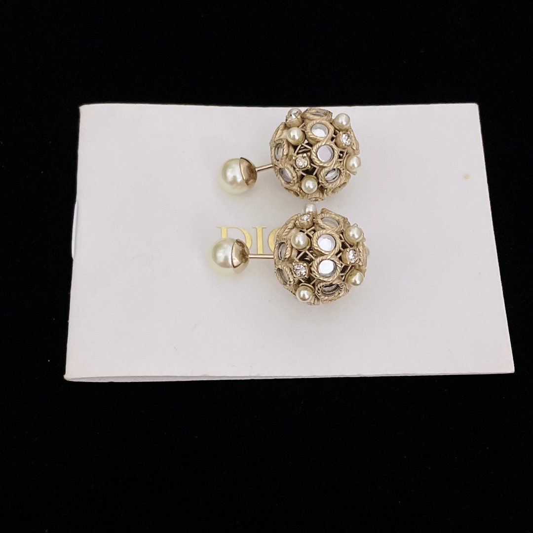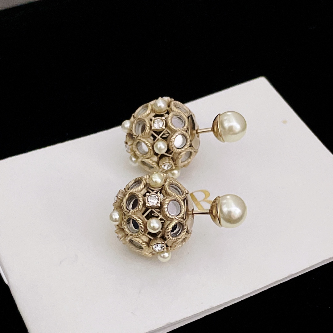 Dior hollow multi-mirror ball earrings, hollow design, low-key luxury and connotation, classic large and small bead design.
