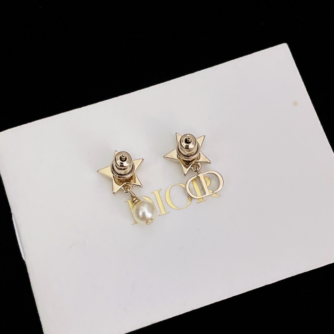 Dior star hanging CD bead earrings, star elements, can be matched with daily wear, the middle of the star is silver design