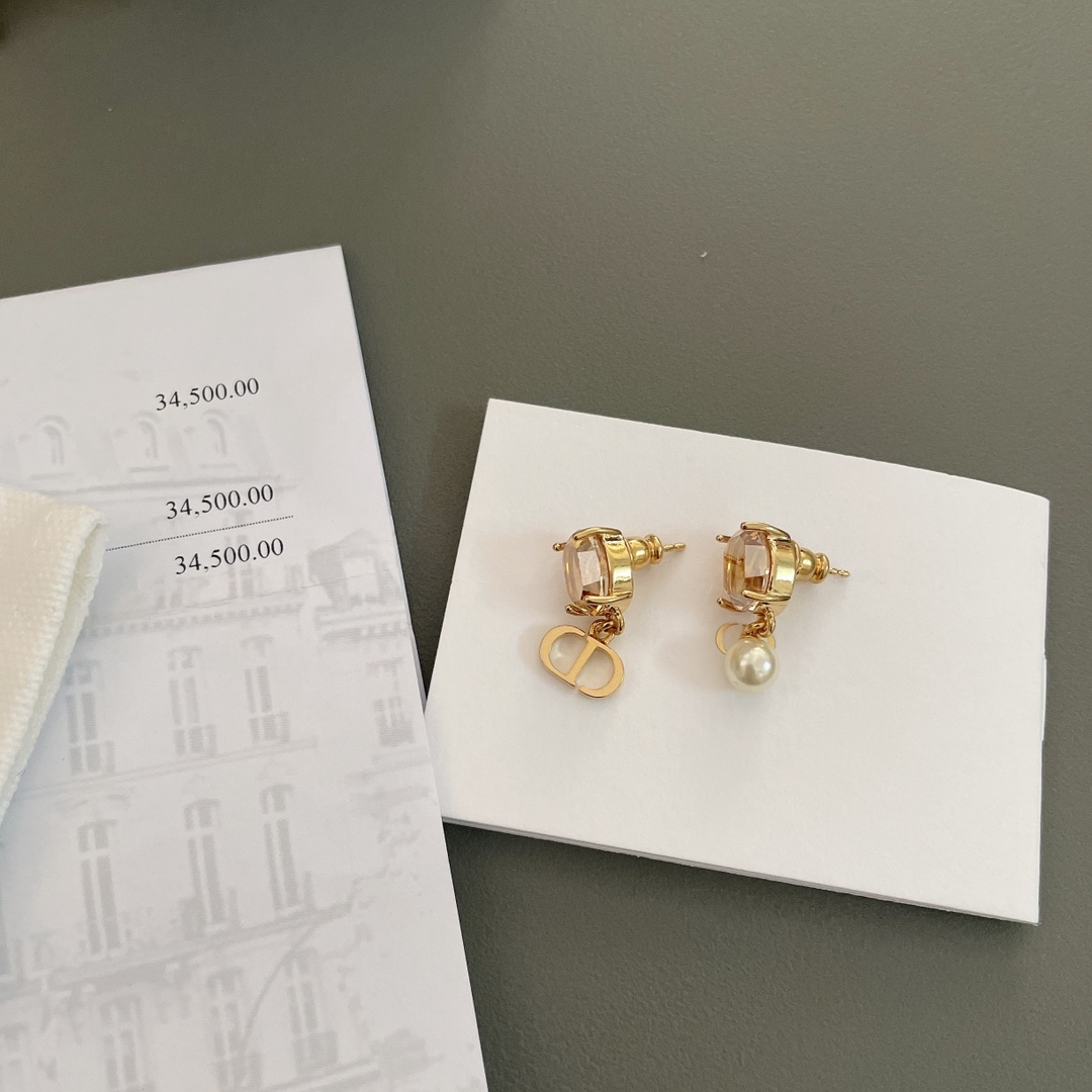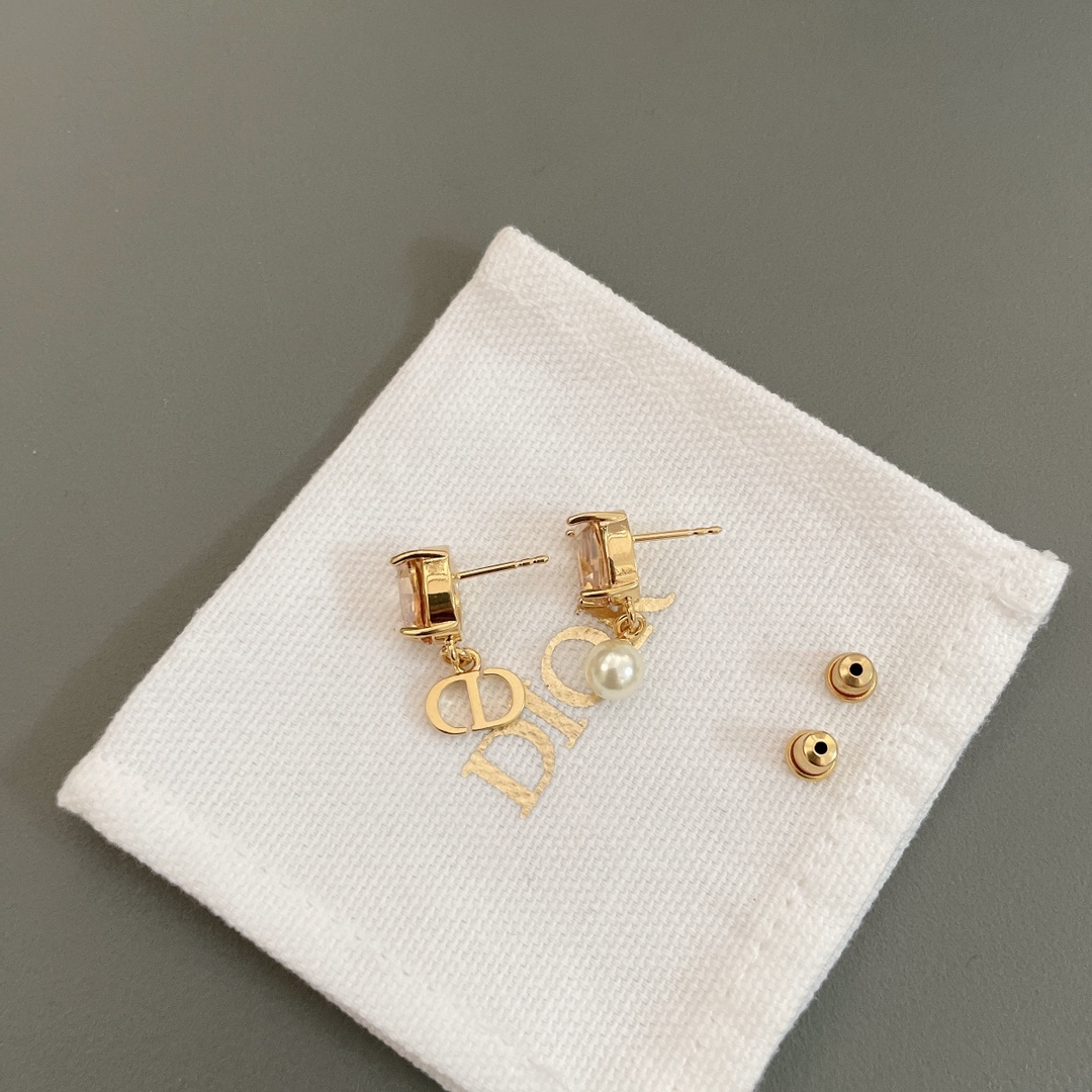 Dior diamond drop CD bead earrings, pink and champagne colors, very small and exquisite, full of girlish feeling. Pink and champagne are both beautiful and very suitable for daily matching