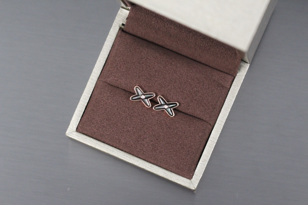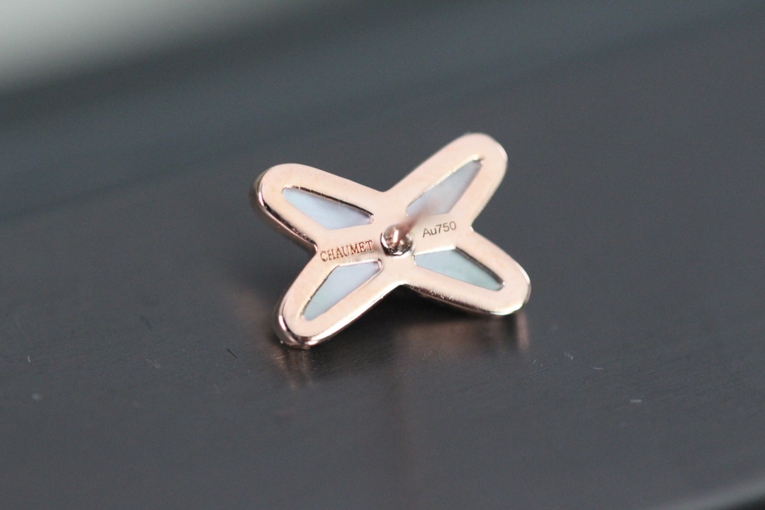 Chaumet Paris Lien-s Love Collection Grey Pearl Cross Stud Earrings