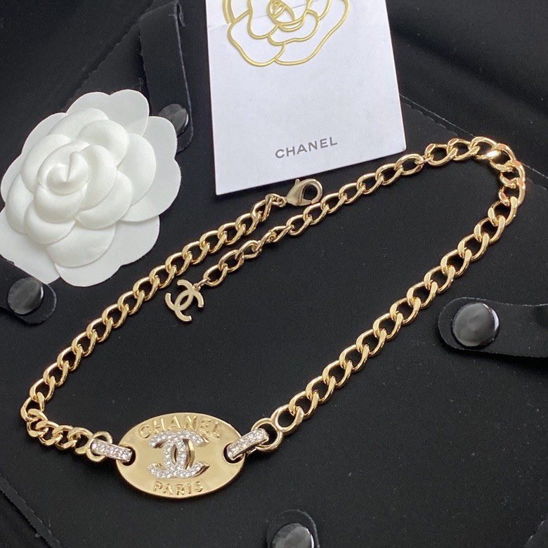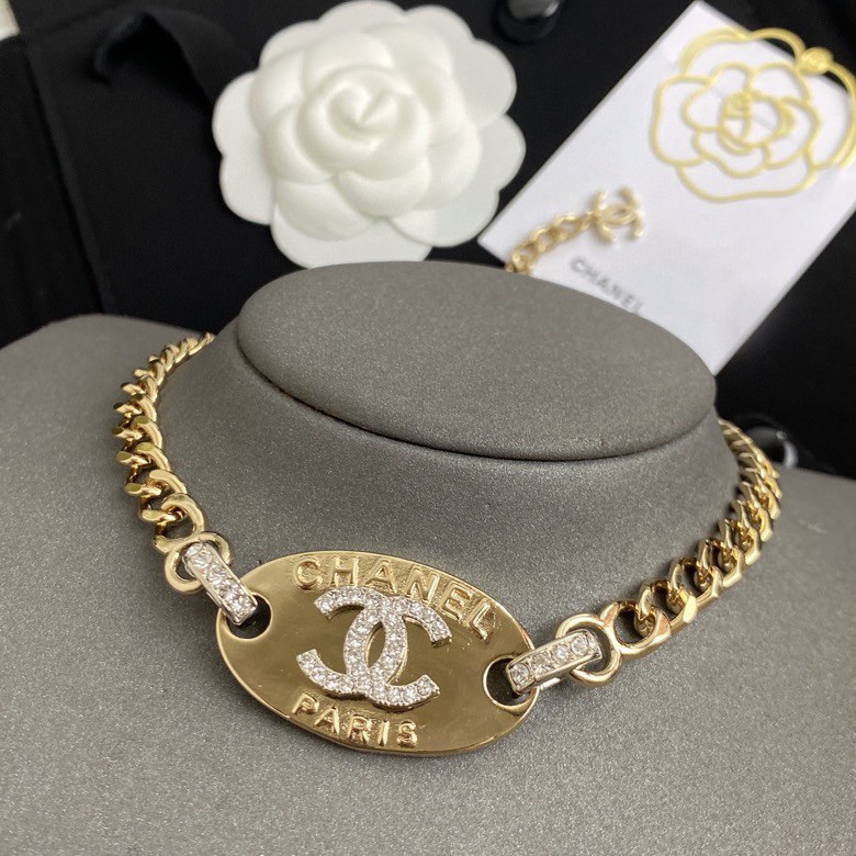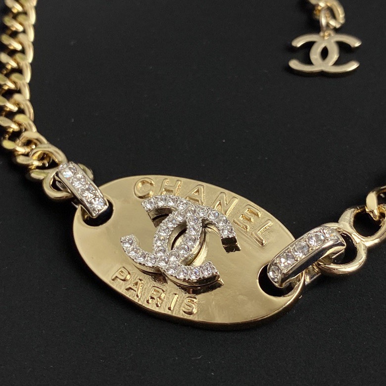 Chanel's new double-C necklace. Featuring a light gold hue, it's versatile and easy to wear. This retro, modern, ladylike necklace is minimalist yet sophisticated.