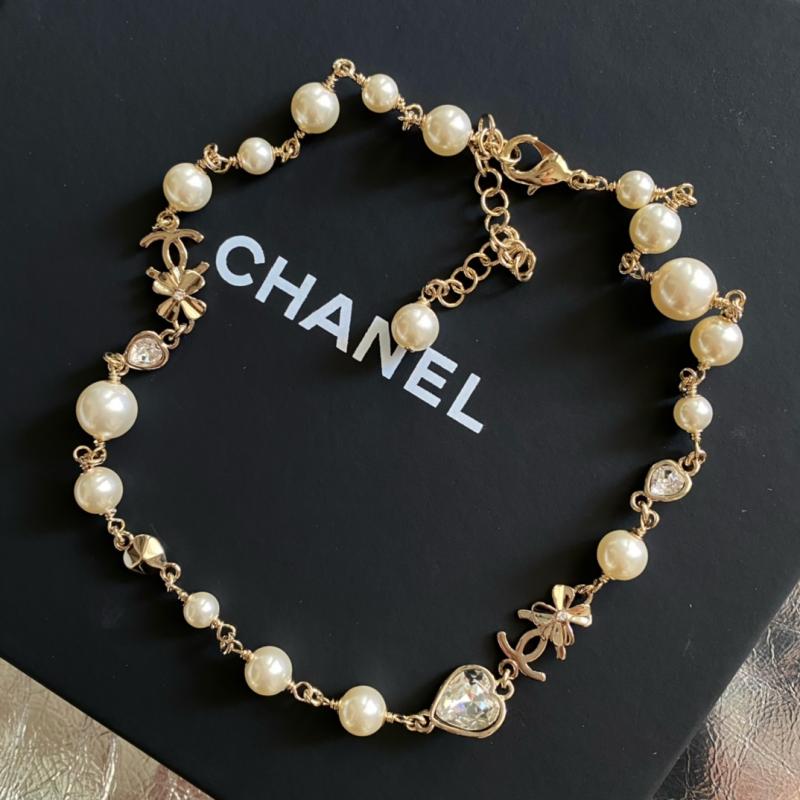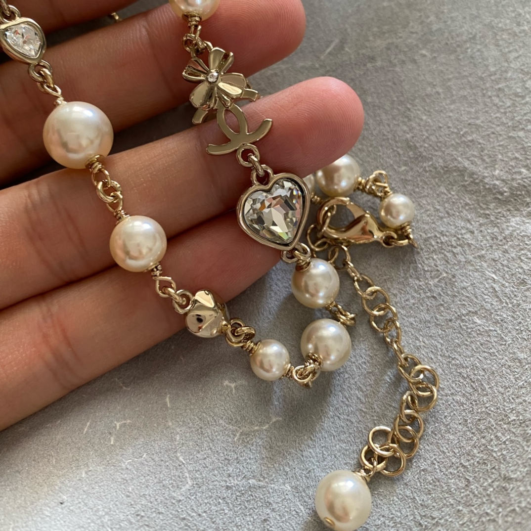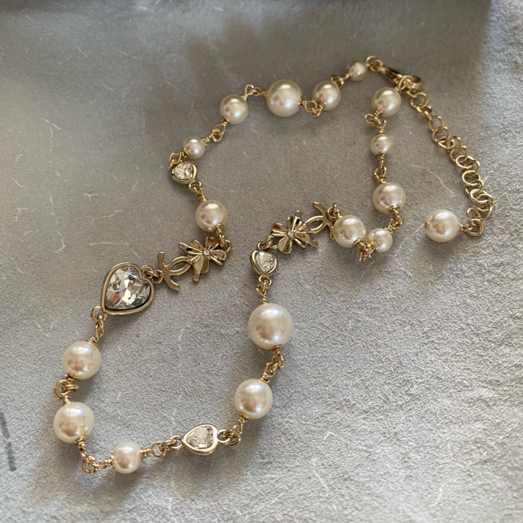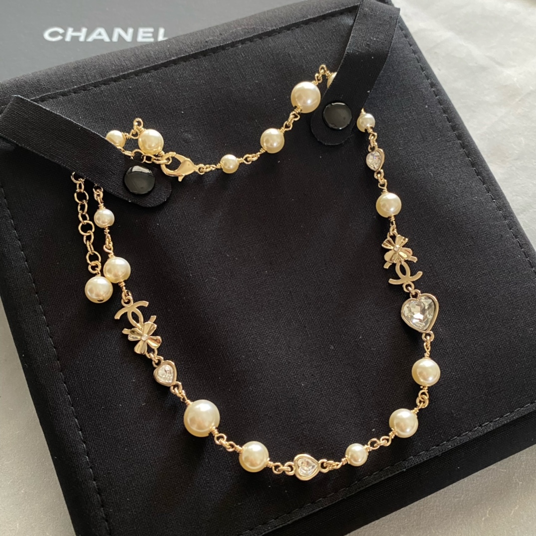 Chanel Heart Crystal Pearl Necklace