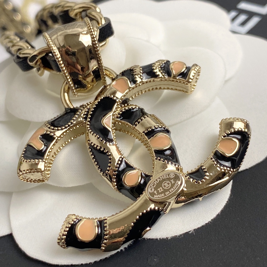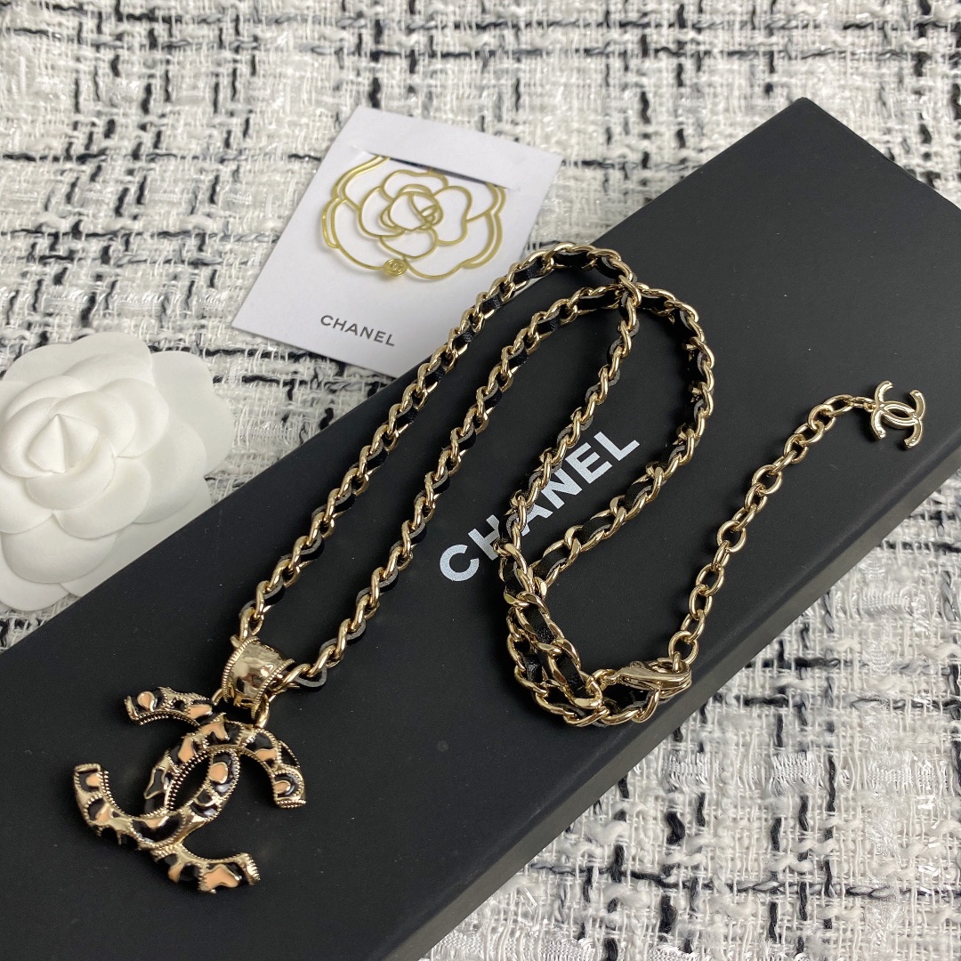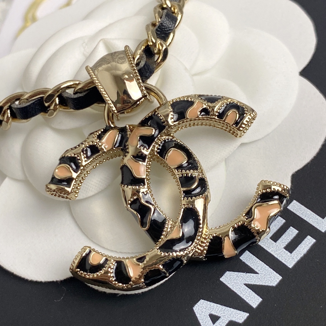 Chanel's new double-C leopard-print necklace. Featuring a light gold hue, it's versatile and easy to wear. This retro, modern, ladylike style is minimalist yet sophisticated.