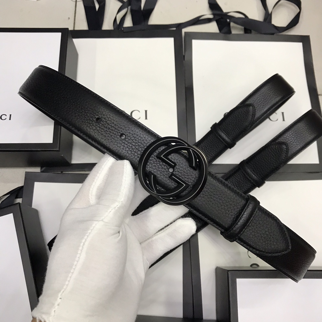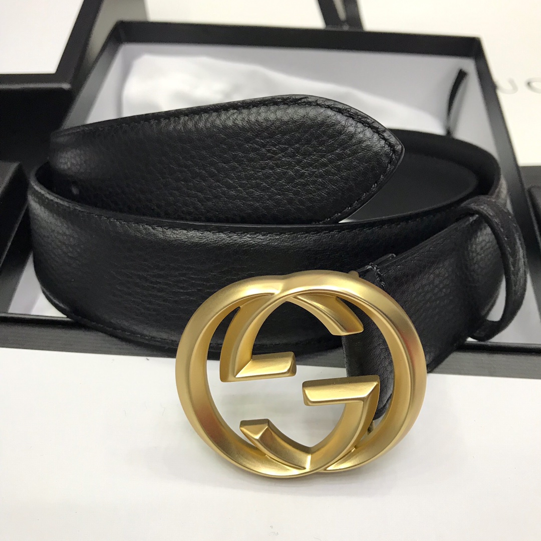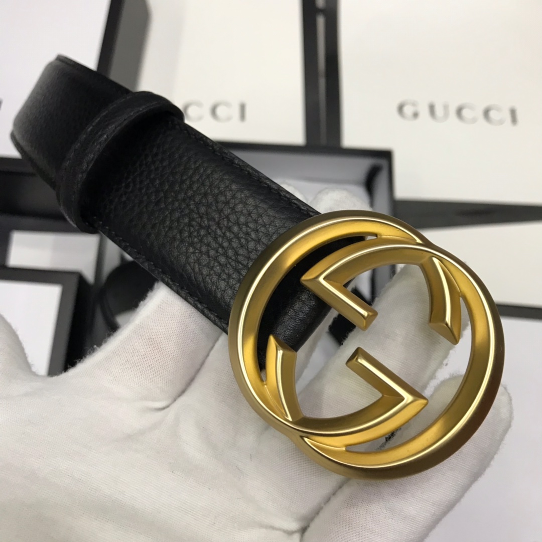 Gucci 2020 Gucci fashion bestseller Color: Black, Size: 3.8cm, the belt body is made of textured top layer leather with a new GG interlocking polished brass metal buckle.