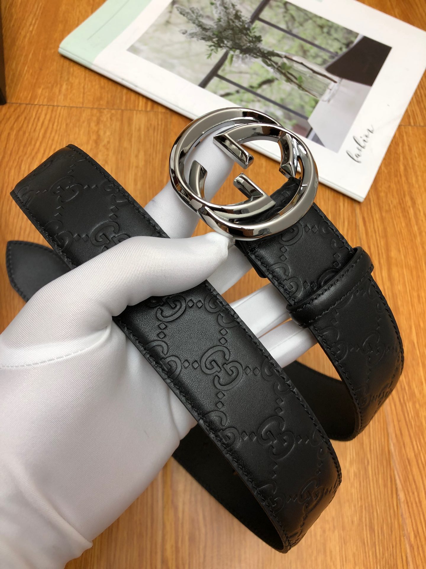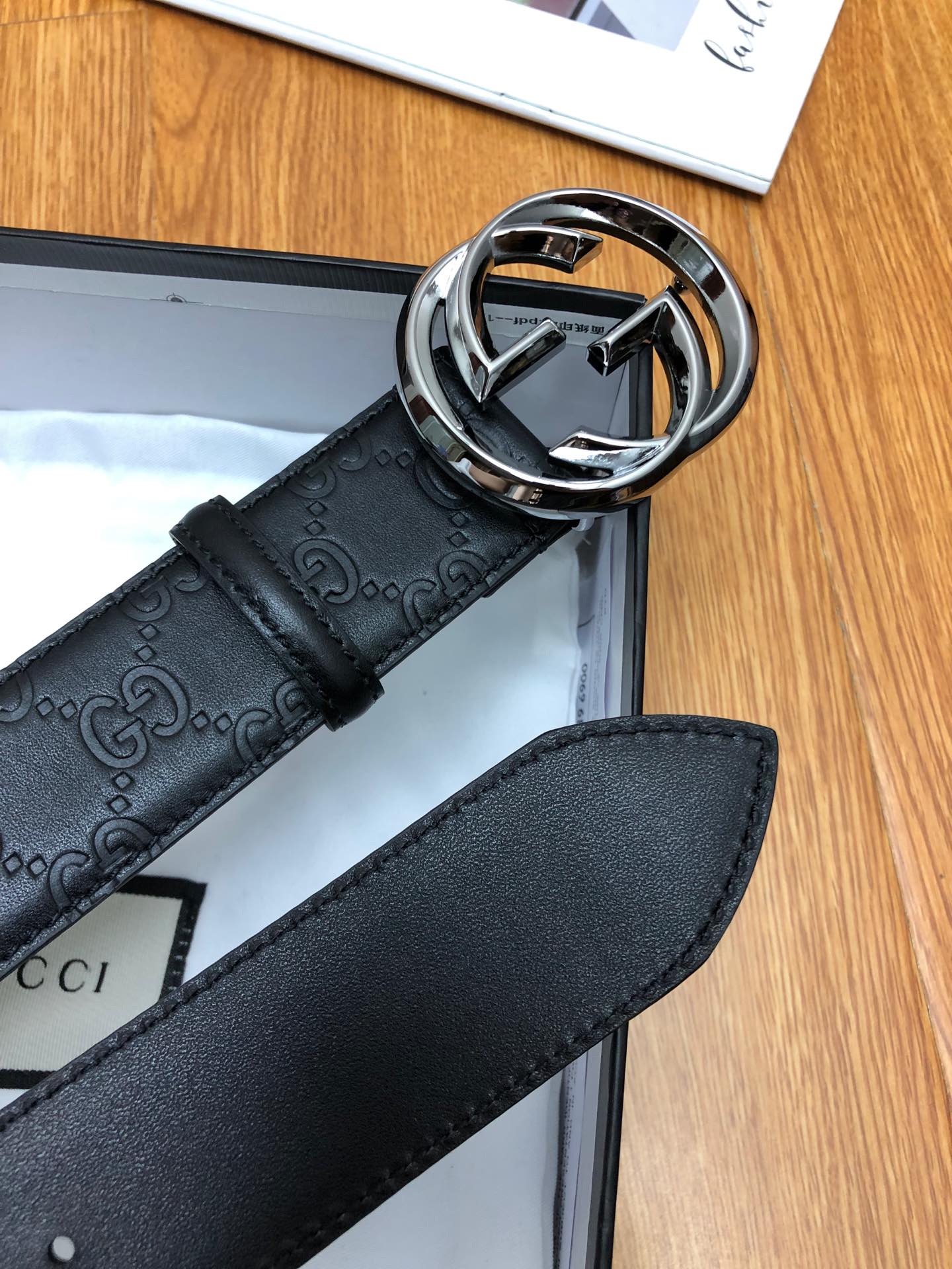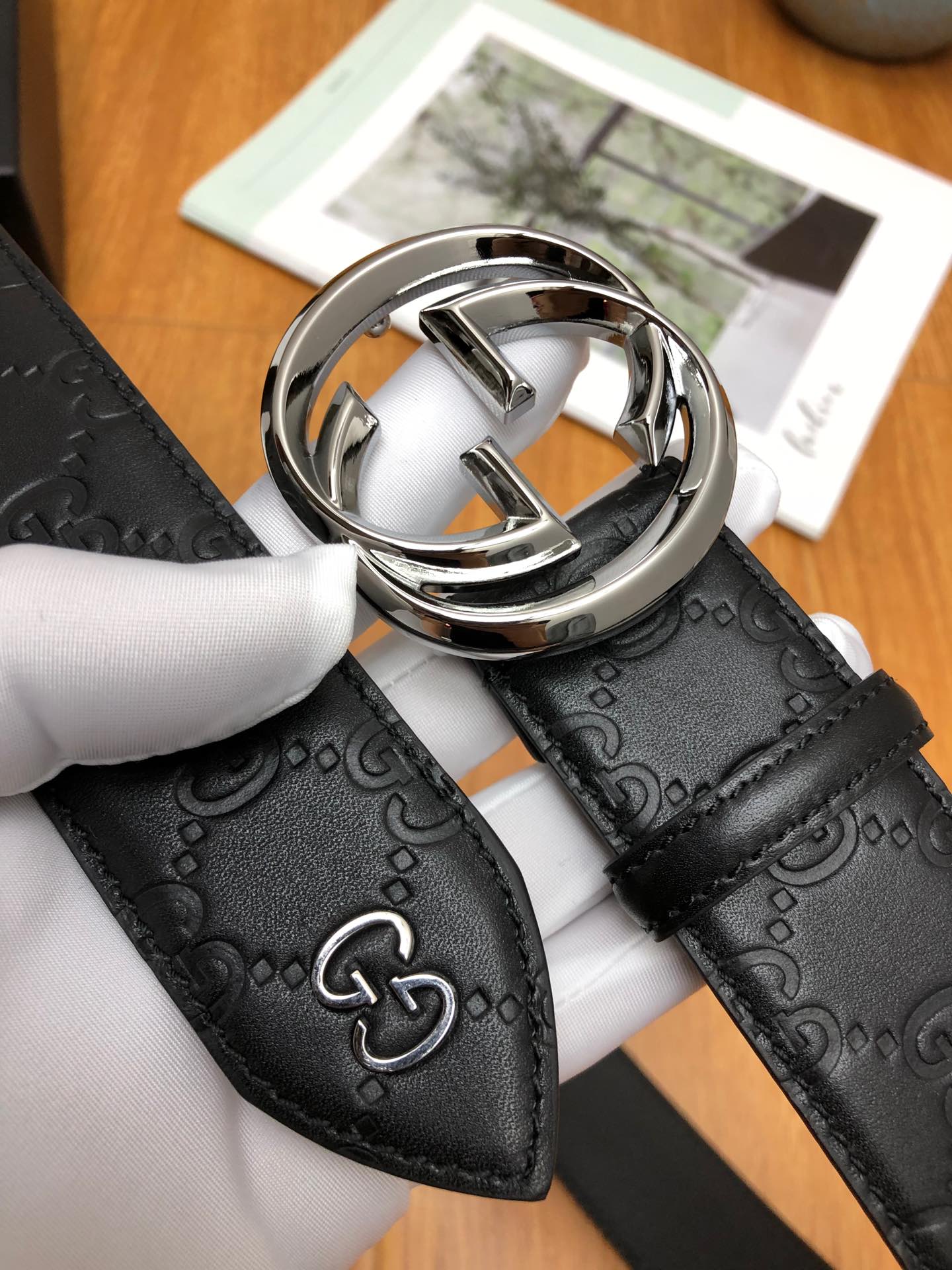 GUCCI 头层压G面,尾钉双G刚钉logo,搭配原单扣,宽度3.8cm。