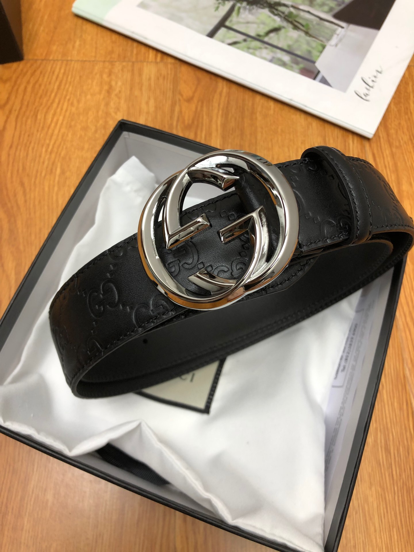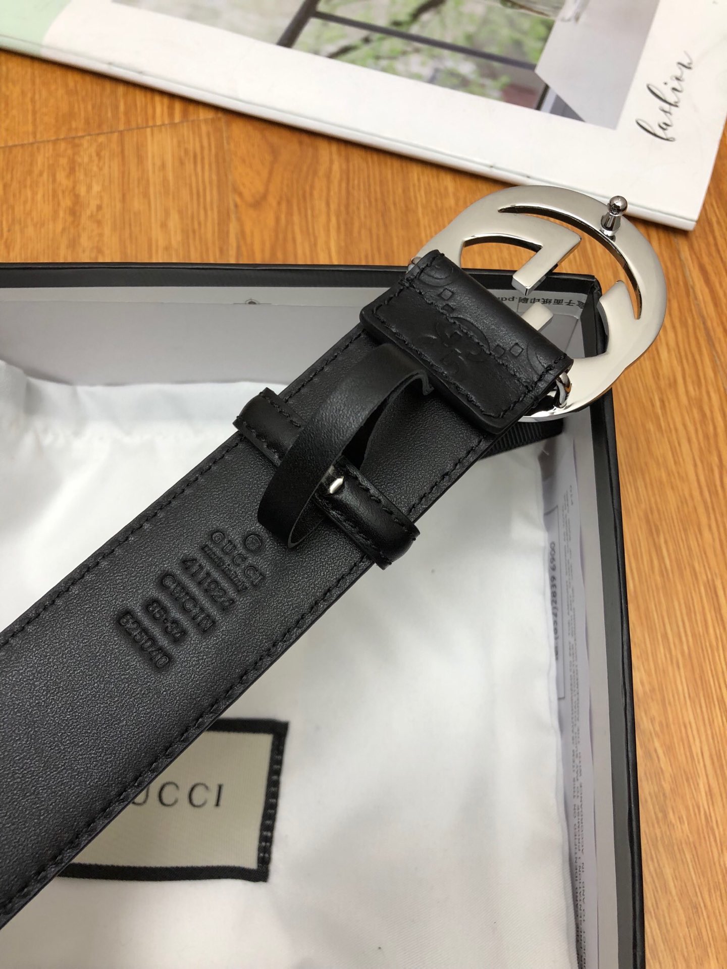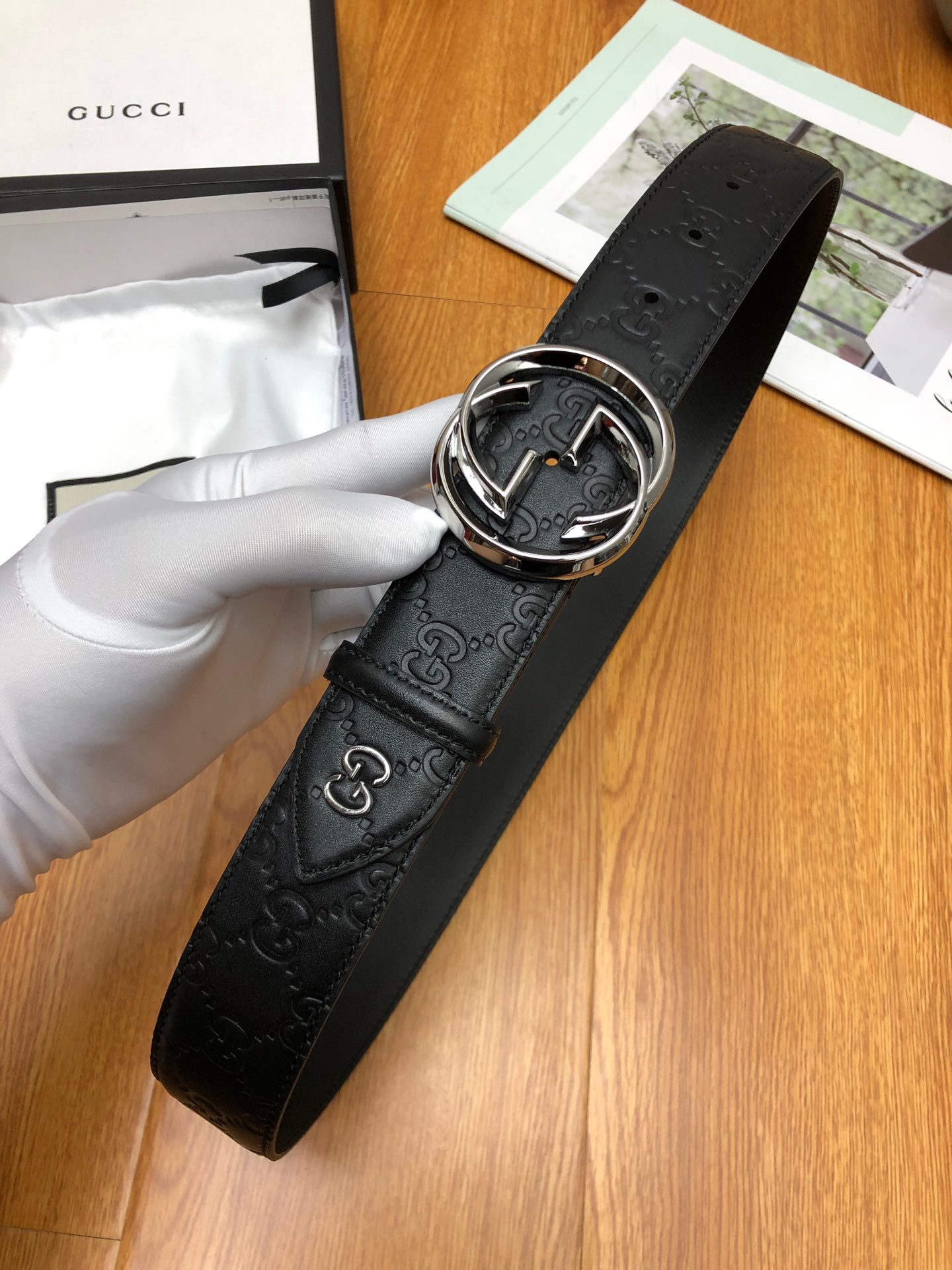 GUCCI 头层压G面,尾钉双G刚钉logo,搭配原单扣,宽度3.8cm。