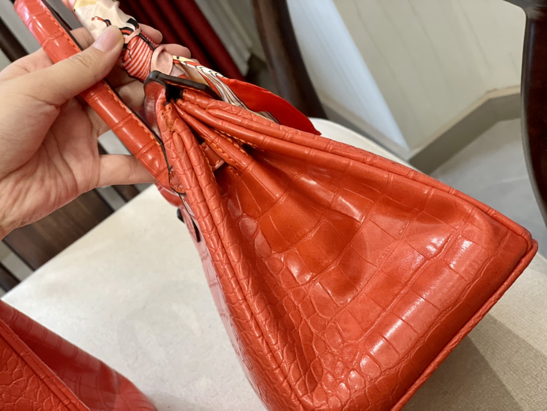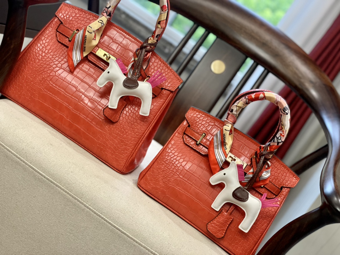 爱马仕铂金包鳄鱼纹, 百搭款不过时,质量超高性价比。尺寸 30cm 不可斜挎尺寸 25cm可以斜挎